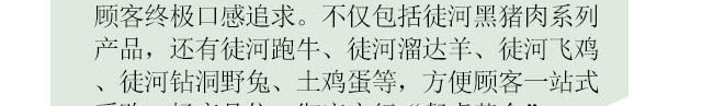 徒河食品是山東徒河黑豬食品有限公司歷經(jīng)八載全力打造的“中國第一黑豬”品牌,徒河黑豬源于大禹治水年代,是大禹王治水時發(fā)現(xiàn)的古代物種,經(jīng)過4200多年的世代家養(yǎng)馴化而成,2006年在徒河黑豬瀕臨滅絕時重新保護這一古老物種。并開發(fā)利用生產(chǎn)出了絕對安全放心的高端肉食品,源自大禹時代的品牌,傳承4200年的美味和品質(zhì),很老很老徒河豬,老早老早老味道........