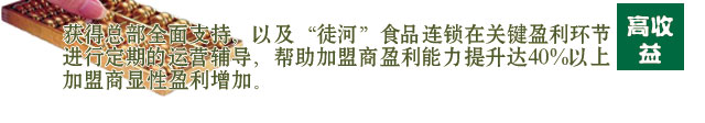 ,憑借著“徒河”連鎖的品牌您也將會獲得一個非常穩(wěn)定的盈利途徑。