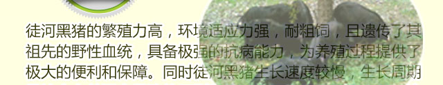 生長速度較慢,生長周期是社會上普通品種豬的三到四倍,這就為徒河黑