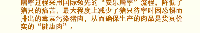 上減少了豬只待宰時因恐懼而排出的毒素污染豬肉,從而確保生產(chǎn)的肉